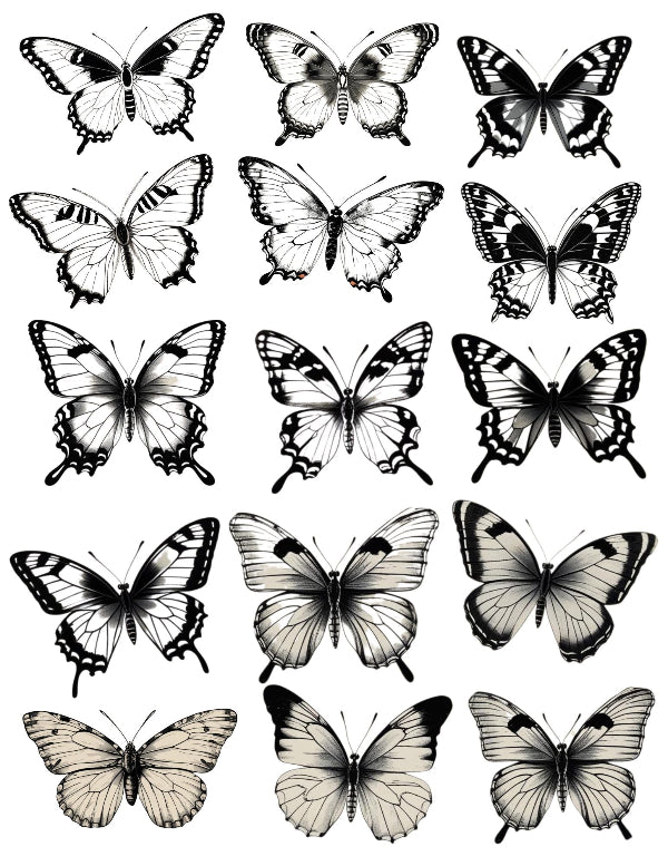 These delicate Black & White Butterflies are the perfect addition to your creative stash! Designed for maximum versatility, this A4-sized printable is ideal for fussy cutting, layering, journaling, scrapbooking, or turning into charming little tags.